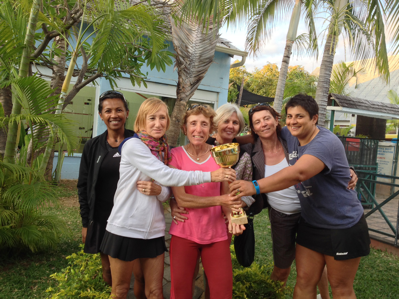 | Josian Payet et Paul Viadère, de notre équipe 2 des 55 ans et plus en double face à Jean-Pierre Faure et Jean-Louis Thalouarn, du TC Saint-Pierre, en demi-finale de leur championnat [cl. Ph. Guillot]. | Les 35 ans et plus championnes de la Réunion : Sandra Meyer, Catherine Kernéis, Marie-France Lamour, Catherine Martineau, Françoise Lamoureux et Alexia Boutonne [cl. X]. | Les